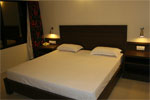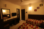 These are large airy well lit air-conditioned rooms. This room has king size double bed with 8" spring mattresses, 32" LCD TV, mini bar, electronic safe, wardrobe, intercom, attached modern bathroom with pressurized running hot and cold water.
